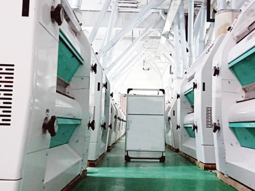 在倉(cāng)儲(chǔ)、干法清理,制粉及面粉配粉的各道工序完全自動(dòng)化,日加工小麥200噸的面粉加工生產(chǎn)線。